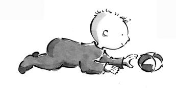 - niet te laten ‘doorschieten’ naar veel overstrekken. Te veel strekken belemmert de ontwikkeling, namelijk: je moet kunnen buigen om te kunnen grijpen, rollen, steunen op de armen in buiklig, kruipen, zitten, enzovoort;